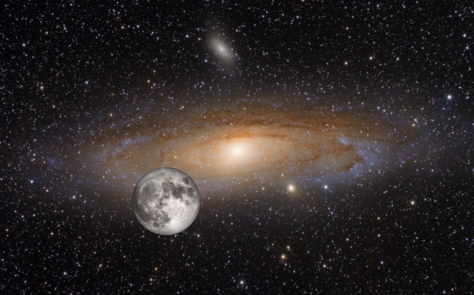 At this point, you’re probably asking, “if galaxies are so large in our sky why are they so difficult to see?” Take the Andromeda Galaxy. It spans about six full moons across the sky and lies only 2.5 million light-years away. Yet, through a telescope only its galactic core is clearly distinguished as a faint, fuzzy patch of grey. This is because galaxies are not singular large sources of light but many, many tiny ones spread over thousands of light years. Even with roughly a trillion stars, most of Andromeda’s disk has such low stellar density that each patch of sky contributes very little light, leaving only the densely packed central core bright enough to stand out.