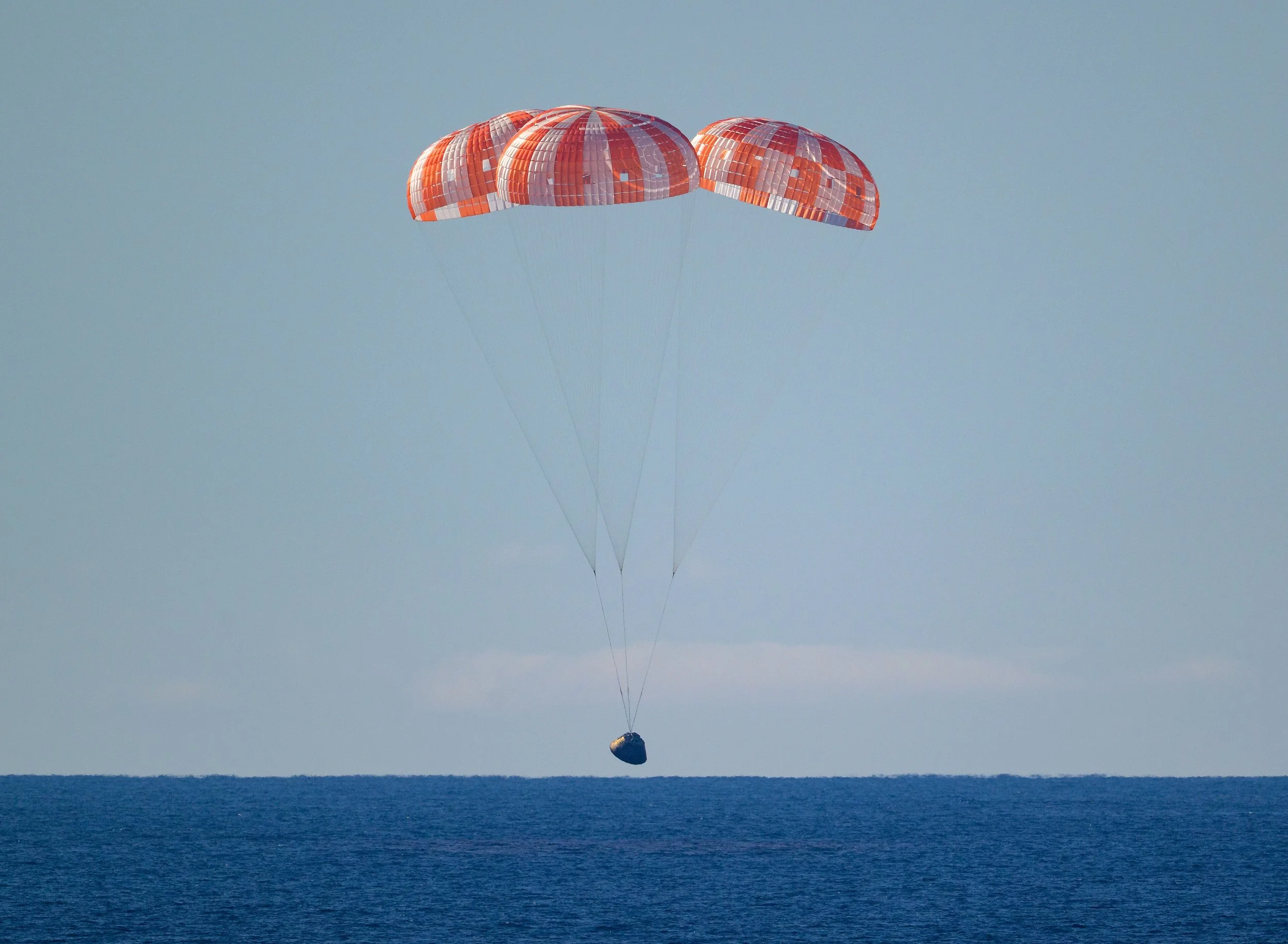 Once Integrity slowed sufficiently, communications were reestablished and a cluster of large parachutes was deployed, which slowed Integrity’s decent all the way down to a leisurely 32 km/h.