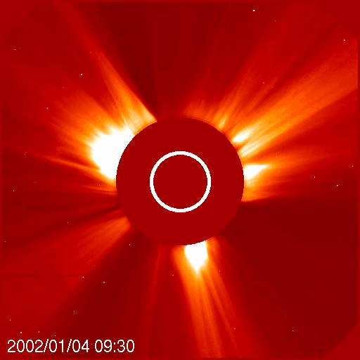 Coronal mass ejections (CMEs) are huge clouds of plasma that are released into space. They are usually the result of eruptions caused by the twisting up of the Sun’s magnetic field followed by the sudden release of built-up energy. They are quite similar to solar flares but are generally much broader, releasing much more energy (up to 100 times more), but at a much slower speed (solar flares can reach Earth within 8 minutes where CMEs can take a few days). They can cause geomagnetic storms on Earth, disrupting satellites, damage power grids and create beautiful aurorae.