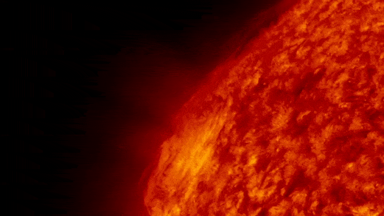 Spicules are jet-like structures like flickering flames projecting outward from the Sun’s surface. These dynamic, wispy eruptions appear and disappear within minutes, like granules, typically reaching 5,000-9,000 km high. They are thought to be formed by the sudden release of magnetic energy, which propels plasma upwards from the photosphere into the Sun's chromosphere. It could explain why the latter is so much hotter than the former.